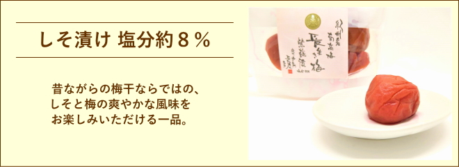 | はちみつ入(塩分3%・5%・8%) | しそ漬け | うす塩味 |