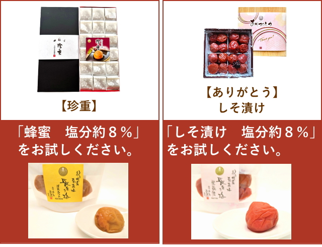 【冬ギフト・お歳暮】 利き梅 はちみつ入(塩分約3%・5%・8% )しそ漬け (塩分約8%)8粒入り